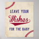 Use nossos desejos temáticos de beisebol vintage para a placa de exibição de bebês para que seus hóspedes saibam deixar seus desejos para o bebê. Você pode personalizar facilmente o sinal com o nome do bebê se quiser antes de adicionar a lista ao seu carrinho. Certifique-se de procurar nossos desejos coordenadores para cartões de bebê.