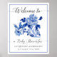 "Blue White Chinoiserie Floral Welcome Chá de fraldas Poste." "Bem-vindo a um Chá de fraldas para" está escrito em texto de tipografia de caligrafia e foi projetado para coordenar com o Chinoiserie Floral Marinho Blue e White Chá de fraldas Suite. A elegantemente pintada trabalho de arte foi criada pela artista internacionalmente licenciada Audrey Jeanne Roberts. Um pássaro estilizado em um galho com uma flor Chrysanthemum solteiro e folhas e flores tradicionais do estilo chinês. Direitos autorais.