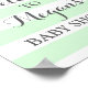Bem-vindo ao poster de sinal de Chá de fraldas com nome personalizado no padrão de listras verde e branca da casa da moeda com flores cor-de-água rosa cor-de-pêssego vintage com letra de estilo manuscrita.