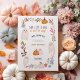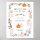 Bem-vindos aos seus convidados em estilo assustador com este encantador sinal de boas-vindas ao chá de fraldas de Halloween! Apresentando adoráveis fantasmas de aquarela pintados à mão, abóboras e delicadas flores azuis de outono, esta placa estabelece o tom festivo perfeito para sua celebração. A escrita brincalhona "Our Little Boo is on the Way!" captura a essência da ocasião, enquanto a mensagem personalizada adiciona um toque caloroso e convidativo. Ideal para exibir num calcanhar, este cartaz combina o capricho do Dia das Bruxas com o conforto do outono, fazer-o uma adição encantadora ao seu decoro chá de fraldas.