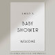 Texto simples Chá de fraldas de boas-vindas preto branco. Disponível digitalmente e impresso. Simples elegância contemporânea com este design de texto moderno para acolher seus convidados para seu chá neutro em gênero, que é totalmente personalizável. Personalize facilmente o texto conforme necessário e altere as cores do texto e do plano de fundo se desejar através da opção editar mais