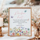 Adicione um toque lúdico ao seu chá de fraldas com este Sinal de Jogo de Caça com Pacificador da Borboleta do Jardim Encantada! Projetado com borboletas fluindo, flores silvestres de aquarela e uma paleta de cores pastel macio, este sinal é uma forma charmosa de encorajar os convidados a participar de uma caçada divertida de tesouros. Esconda pequenos pacificadores à volta da festa e deixe a competição começar — quem encontrar mais ganha!