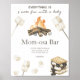 Aquarela uma fogueira, marshmallow em paus, sanduíche de biscoito. Campanha na floresta.