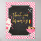 Poster Chá de fraldas de CHURRASCO Gingham rosa Obrigado