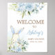 Poster Chá de fraldas de coelho azul floral bem-vindo