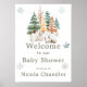 Poster de chá de fraldas russo com coelhos coelhos bonitos, árvores e flocos de neve. Perfeito para um chá de fraldas de inverno. As palavras podem ser alteradas para se adequarem aos seus próprios detalhes ou requisitos