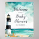 Belo poster chá de fraldas com um farol preto e branco náutico, estrelas-do-mar e conchas. Perfeito para um casamento. As palavras podem ser alteradas para se adequarem aos seus próprios detalhes ou requisitos