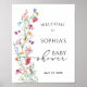 Poster de Sinal de Boas-vindas do Chá de fraldas de Flores Selvagens de Aquarelas. Itens correspondentes disponíveis.