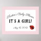 Chá de fraldas rosa bem-vindo é um sinal de menina com uma joaninha.