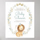 Bem-vindos convidados com este símbolo de boas-vindas de chá de fraldas safari fofo personalizável. Apresenta o preço do leão bebê com terra verde. Este sinal de boas-vindas do príncipe leão é perfeito para chás de fraldas de safari e temas da selva. Personalize adicionando nome, evento e outros detalhes.