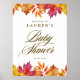 Bem-vindo a convidados para o seu evento com este sinal de boas-vindas personalizável ao chá de fraldas. Apresenta terras de folhas em queda em tons de outono. Personalize adicionando seus detalhes. Este sinal de boas-vindas ao chá de fraldas do outono é perfeito para chás de fraldas do outono.