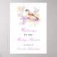 poster chá de fraldas bonito com um pássaro adorável e flores roxas e amarelas. Perfeito para primavera ou chá de fraldas de verão. As palavras podem ser alteradas para se adequarem aos seus próprios detalhes ou requisitos