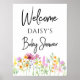 Sinal de boas-vindas do Chá de fraldas de flor selvagem que você pode personalizar com o nome da mãe que será. Esta bonito design de flor silvestre a aquarela tem elegante caligrafia manuscrita e delicadas flores de prado em laranja lilás rosa e amarelo. Bem-vinda, poster, feminina e moderna, para chá de fraldas de menina. Por favor, procure na minha loja e na coleção de Prados de Flores Selvagens estilos de alternativo e itens correspondentes.