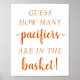 Sinalização de contagem de Mesas de jogos: cor de laranja queimada e branca, cor de pó, no outono neutro, "Adivinhe quantas" (pacificadores, doces, meias, etc.) chá de fraldas ou gênero revelam um sinal de mesa da festa com um roteiro divertido, escrito à mão. O clássico design inclui uma moderna camada de tipografia de citações feitas à mão. Para outras cores ou produtos correspondentes, visite a loja justFharryn Zazzle ou entre em contato com o designer, c/o Fharryn@yahoo.com Todos os direitos reservados. #bohochic #zazzlemade