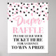 Sinal de rifa de fralda para chá de fraldas em um padrão de confete preto e rosa.