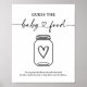 Convide os chás de fraldas convidados a participar de um jogo de 'Adivinhem a Comida do Bebê' com este simples e elegante cartaz de mesa, com um roteiro moderno de coração.