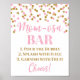 Bar de sinal de poster Momosa para chá de fraldas em branco, rosa claro e padrão de confete dourado com letra de estilo manuscrita. Perfeito para chás de fraldas e aspersão de bebês.