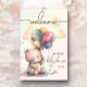 Um ursinho fofinho giro, um monte de balões, borboletas, nuvens fofinhas e seus detalhes junto com a palavra "Bem-vindo" no topo são apresentados nesta divertida poster chá de fraldas. (Tamanhos menores feitos para você em nossa coleção.) CORRESPONDENTE a itens na nossa coleção.