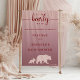 Defina o tom para sua chá de fraldas com este poster de boas-vindas. Projetado com um pano de fundo cor-de-rosa e silhuetas adoráveis de ursos de madeira, é perfeito para saudar convidados, enfeitar entradas, ou exibir perto da sobremesa ou mesa de presente na sua celebração rústica.
