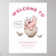 Poster Chá de fraldas do Tema do Dinossauro Rosa Bem-vind