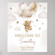 Poster Chá de fraldas do Urso Balão Castanho Bem-vindo