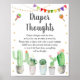 Este adorável jogo de pensamentos Fraldas é uma maneira excelente de se divertir com seu Chá de fraldas e é garantido que seja um grande sucesso! Basta mostrar este sinal bonito junto com uma pilha de marcadores fralda e Sharpie. Cada convidado escreverá uma mensagem na fralda, pode ser algo engraçado ou palavras de conselho para os pais lerem enquanto mudam a fralda do bebê. O design apresenta suculentos de aquarela com bandeiras coloridas de fiesta e confete de folha de ouro.