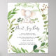 Dê aos seus hóspedes uma direção encantadora com o nosso elefante não diga sinal de atividade de chá de fraldas, com cor d'água verde eucalipto garland e uma elegante letra de estilo manuscrito.