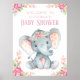 Um sinal de boas-vindas ao chá de fraldas de elefante com adorável elefante de menina aquática em um bonito fundo floral de aquarela. Este adorável sinal de chá de fraldas de elefante também pode ser desdimensionado para uso mesa.