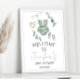 Saudações aos seus hóspedes com charme e estilo usando o nosso elegante 'verde-botânico', o símbolo de boas-vindas da menina, mostrando a cor-de-água verde eucalipto, roupas de menina e brinquedos chá de fraldas de menina.