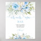 Poster Chá de fraldas Floral Azul Sinal de bar Mãe-osa