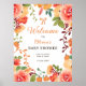 Bem-vindos convidados ao seu chá de fraldas de outono com este charmoso sinal de boas-vindas, pintado à mão. Apresentando vibrantes florais de aquarela e abóboras em tons ricos de laranja, vermelho e verde, esse sinal encapsula perfeitamente o calor da estação. A letra elegante do guião saúda calorosamente os seus hóspedes. Esta placa festiva e convidativa define o tom perfeito para uma celebração memorável. Apresentando arcos, abóbora e folhagem sobre um fundo branco editável.