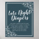 Poster Chá de fraldas Fraldas Noturnas Azuis Flores Branc