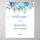 Poster de Boas-vindas do Chá de fraldas Hydrangea Blue Watercolor. Itens correspondentes disponíveis.
