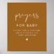 Este chá de fraldas 'orações para o bebê' apresenta um boho moderno minimalista design e uma letra escrita à mão. Altere facilmente as cores e edite o texto *maioria* para atender às necessidades da sua ocasião. Este sinal é perfeito para o seu chá atual, industrial ou boêmico neutro em termos de gênero.
