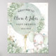 Poster Chá de fraldas Neutro do Elefante Floral Verde Sag