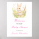 poster chá de fraldas bonito com um adorável coelho e flores rosa e amarelas. Perfeito para primavera ou chá de fraldas de verão. As palavras podem ser alteradas para se adequarem aos seus próprios detalhes ou requisitos
