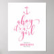 Um doce e náutico sinal de boas-vindas ao chá de fraldas para adicionar o toque final ao seu chá de fraldas. Apresentando "Ahoy It's a Girl" em uma fonte caligráfica rosa abaixo de uma silhueta de âncora com textura de aquarela rosa. Personalize com suas informações de chá na parte inferior. Compre toda a coleção náutica de bebês para coordenar itens para o seu chá de fraldas.