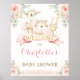 Poster Chá de fraldas Rosa Floral Florestal Animais Bem-v