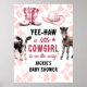 elegante trabalho de arte de cor d'água rodeada ocidental. Chá de fraldas do tema do rodeio de animais fazendas do país divertido. Fácil de personalizar. cowgirl, rosa, chá de fraldas de boas-vindas posters, sinal de boas-vindas