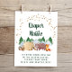 Cartaz de poster-carapaça de fralda, doce e rústico, com uma ilustração fofinha de animais da floresta com a tenda acampada nas montanhas e na floresta, e "Fralda Raffle" num roteiro verde de caça.