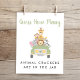 Um sinal de jogo bonito para o seu chá de fraldas com "Adivinhem Quantos Santuários Estão No Jar" escrito numa mistura de uma engraçada escrita verde-selva e uma simples tipografia de cinza e uma ilustração com aquarela de animais do zoológico bebê (leão, elefante, zebra, macaco e girafa) empilhada num veículo safari. Coloque um boião ou garrafa cheia de bolachas de animais por baixo e peça aos seus hóspedes para adivinhar quantos estão no boião. O vencedor será o convidado que se aproximar mais sem passar. Os cartões de palpite correspondentes estão disponíveis na nossa coleção de Chás de fraldas Safari Animal Cute.