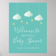 Apresentando lindas nuvens verdes de menta e estrelas ouros em cordas, em um fundo verde neutro de menta, este chá de fraldas, borrifo ou sinal de boas-vindas do chá é perfeito para todos os pequenos que estão a caminho. Projetado por Thisnotme©