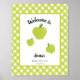Poster de boas-vindas ao chá de fraldas de maçã verde. Para um tema de chá de fraldas de fazenda do campo de maçã.