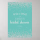 Placa de boas-vindas de chá de noiva elegante em azul turquesa com confetes de diamante prateados brilhantes. Entre em contato conosco para obter ajuda com personalização ou produtos correspondentes.