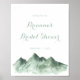 Este poster de boas-vindas do chá de panela de montanha verde é perfeito para um chá de casamento rústico. A design apresenta uma montanha verde pintada à mão de uma aquarela, inspirando um tema do campo.