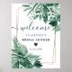 Sinal de boas-vindas do chá de panela de palma verde tropical, com borda geométrica falsa de ouro.