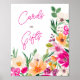 Um sinal de cartas e presentes com a ilustração Elegante brilhante e ousada das flores primavera de verão, com bonito símbolo de chá de panela de flores e pincéis selvagens de grande porte, com uma tipografia caligráfica moderna, com néon brilhante, cor-de-rosa, laranja, verde e amarelo.