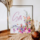 Bem-vindos aos seus hóspedes com amor e estilo com esta placa de presente! Nossa ilustração elegante das flores primavera de verão, Elegante, com bonito flor selvagem e chá de panela com uma tipografia de caligrafia moderna, com flores vermelhas, roxas, rosa, terracotta é um sinal perfeito para sua festa noiva.