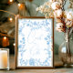 Algo azul antes que eu faça cartões de água florais e sinal de chá de panela de presentes, com flores azuis vitorianas vitorianas vitorianas no estilo da chinoiserie azul clara com uma caligrafia elegante.