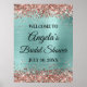 Crie seu próprio chá de panela sinal de boas-vindas poster. Você pode personalizar a cor, o tamanho ou o texto moderno (usado em todos os bonés neste caso) e o estilo de fonte de caligrafia. O plano de fundo apresenta brilho rosa dourado sujo com uma turquesa pálida e textura de folha esfregada de cor clara ombre com faíscas brancas. Todo o brilho e brilho de uma cinta é criado com gráficos digitais que impressão gostam de uma foto.